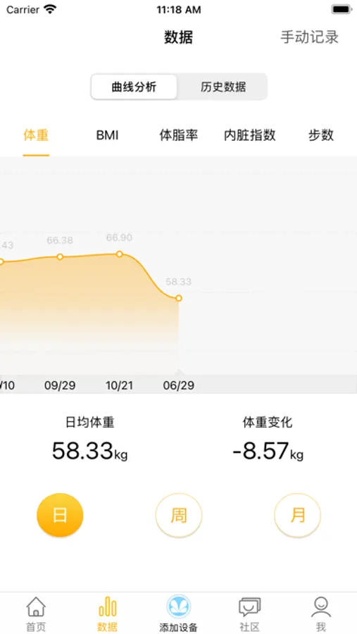 2.具有历史曲线分析,可跟踪每周、每月变化趋势,减肥天天看得见!