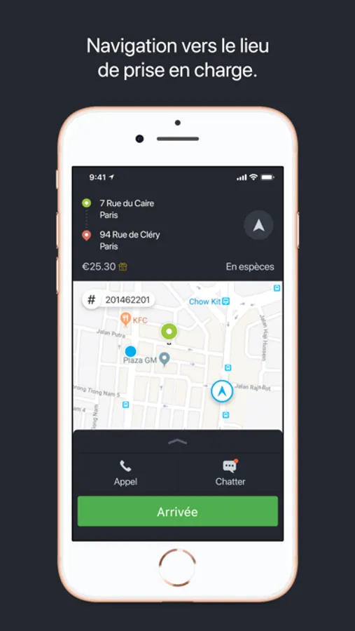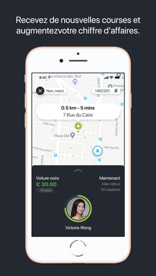 - D’un service de navigation précis pour vous rendre au point de départ et conduire votre client