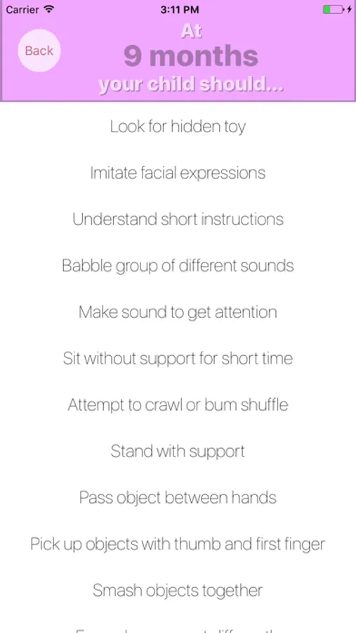 Children grow up so fast and now you can track them as they grow! Since children develop so quickly, it may be hard to remember what they are supposed to do at each age. BabyDo gives you a simple way to monitor your child's development and make sure they are staying on track.