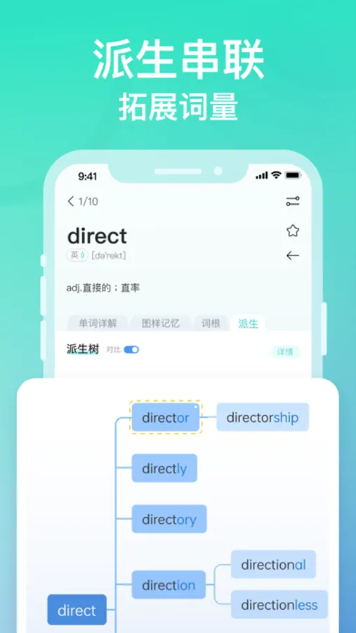 一个家族的单词都被整理在一起。利用前后缀拓展单词,科学记单词,让你的单词量蹭蹭暴涨。