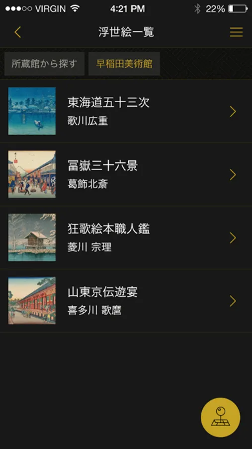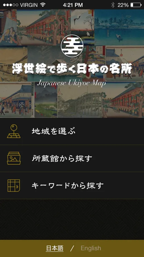 The location information displayed in this app is based on ukiyoe-holding museums’ databases. We expect the number of ukiyoe pieces and cooperating museums to gradually increase, and users can therefore look forward to the occasional new discovery when reopening the app.