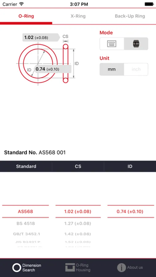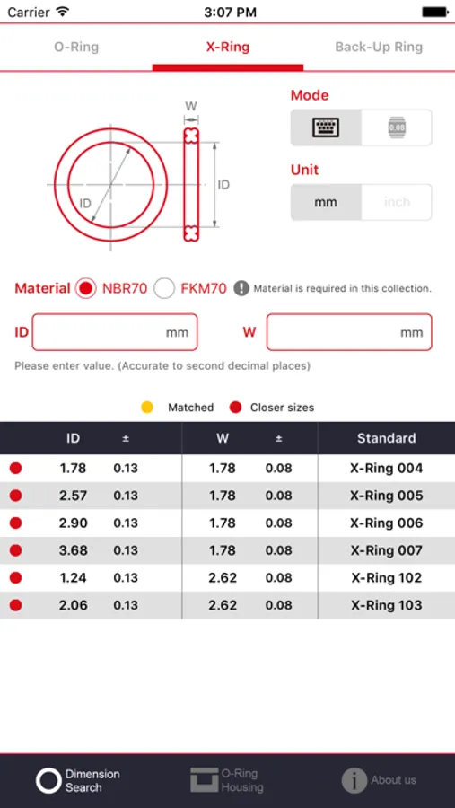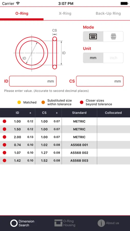 此APP是标准O形圈尺寸搜索与沟槽设计工具。当您使用这个应用程序时,您可以快速查询到各种标准的O形圈、X形圈和挡圈的尺寸。同时,我们提供符合三类产品的沟槽设计建议。