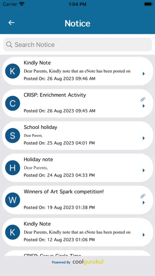 CoolGurukul (also known as CoolG) is CoolG Edu's revolutionary school communication and collaboration platform provides pre-schools, daycares and K-12 schools to quickly enable parent-teacher-school communication along with host of features for complete school management system using CoolG Edu's cloud solution.