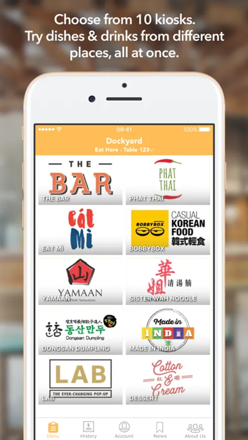 At Dockyard, the world is truly at your fingertips. Choose from 10 kiosks and dozens of dishes, with the chance to sample multiple places at once. Open our app, place your order and that’s it. No waiting in-line, no leaving your meal buddies. Soon, it’s all delivered to your table.