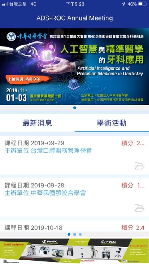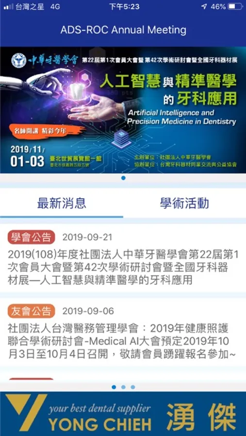 此為社團法人中華牙醫學會年度大會學術演講、展覽資訊專屬APP。