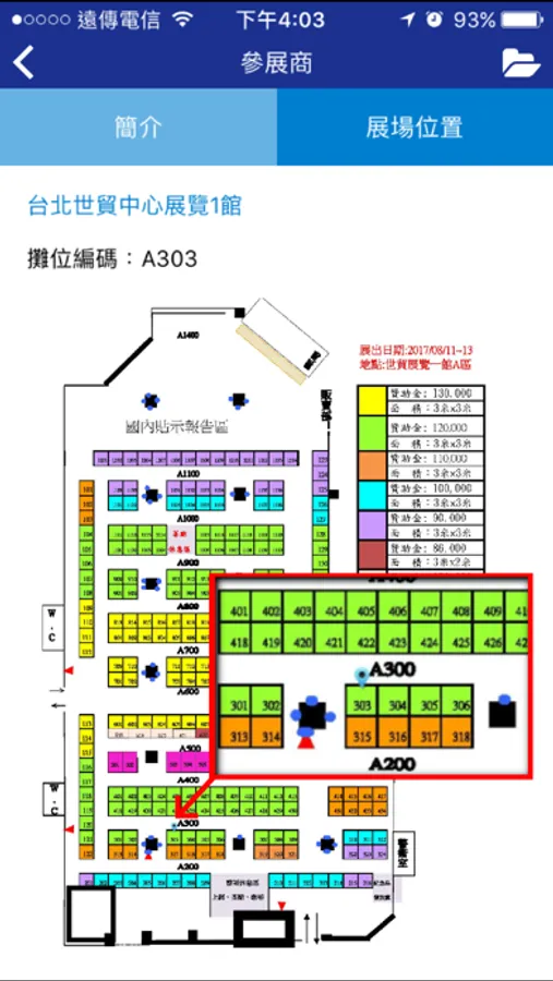 ●參展商 - 除了參展商的簡介、官網連結,還可連接至其展覽館的頁面,以及顯示其攤位在展場平面圖的位置。
