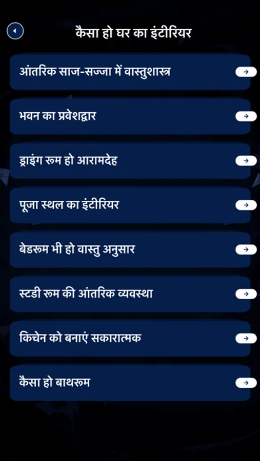 Sometime, even after trying your best, you end up with some bad luck, illness, GRIH KALAH, KLESH, enemies plotting against you, and many other problems. These might be related to VASTU DOSH in your house, office or property owned by you. This app discusses on these issues and how to get rid of them using simple and easy to use techniques.