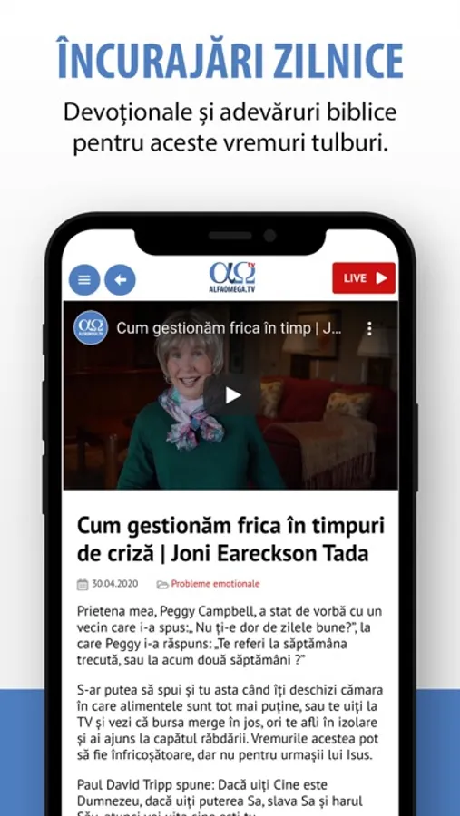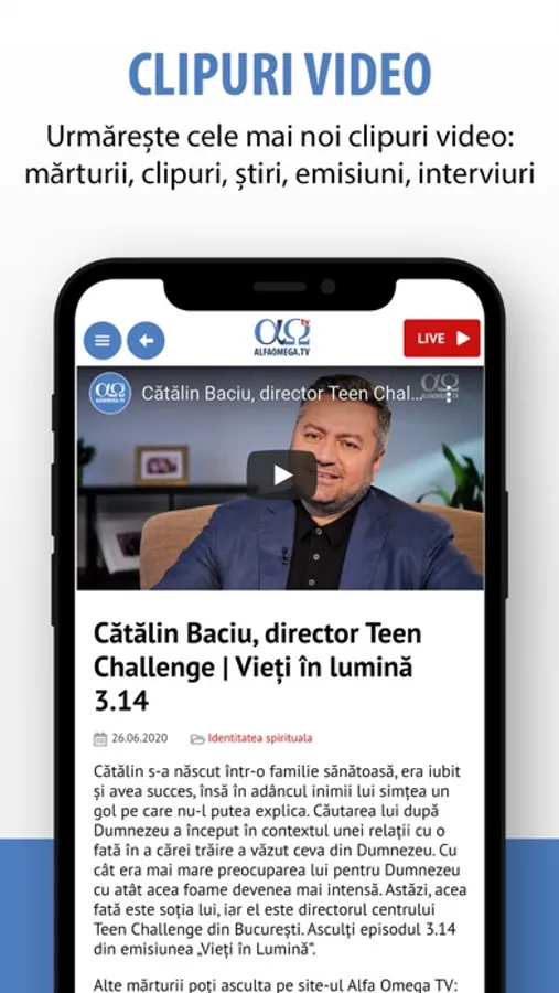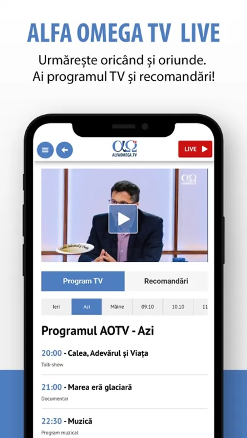 The official mobile app of Alfa Omega TV, a Christian media organization based in Timisoara, Romania