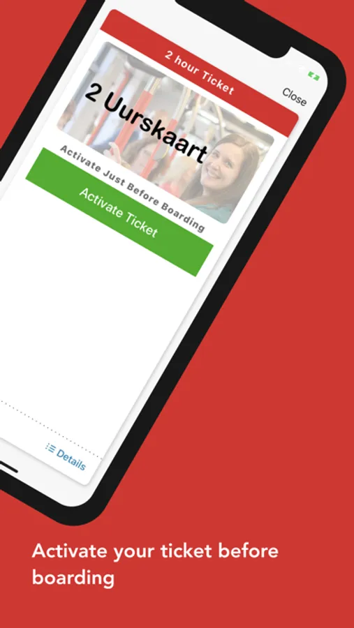 You can quickly and easily purchase tickets before you travel and pay for them by debit card, credit card or iDeal. The tickets are stored directly on your smartphone and can be activated on the travelling time or day. Your smartphone is your ticket and you no longer need a paper ticket.