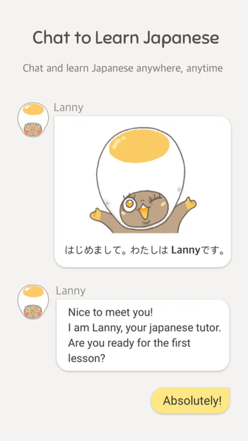 Just install this app, follow the easy education course curriculum and chat one on one with Lanny in Japanese.