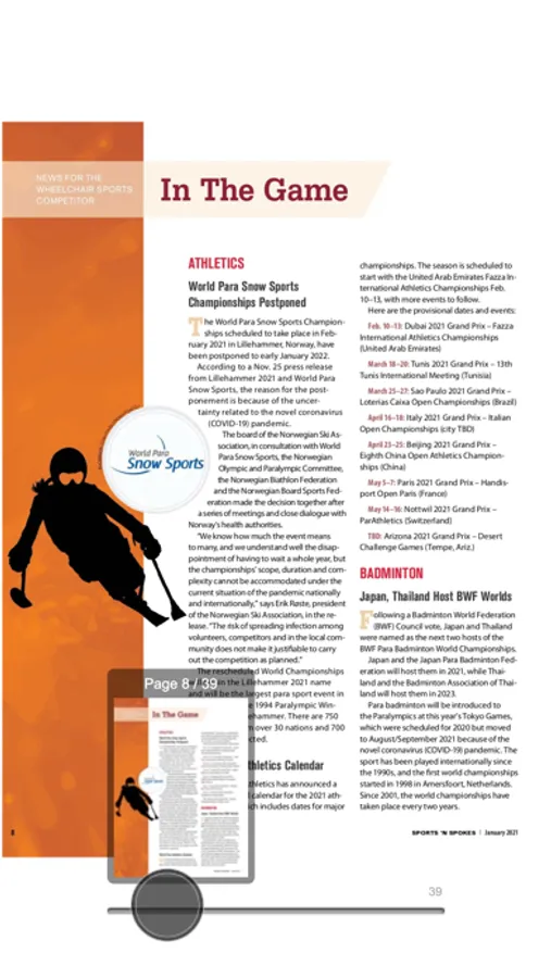 With SPORTS ‘N SPOKES Digital Magazine, you’ll explore the world of wheelchair sports and recreation and stay current on the latest news on athlete profiles, health and fitness, accessible technology and updates for athletes or