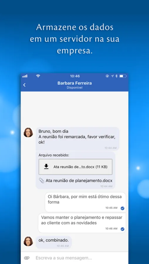 Com opções de compartilhamento de arquivos, localização e áudio, possibilidade de efetuar chamadas de voz inclusive para números externos, fácil instalação e manutenção.
