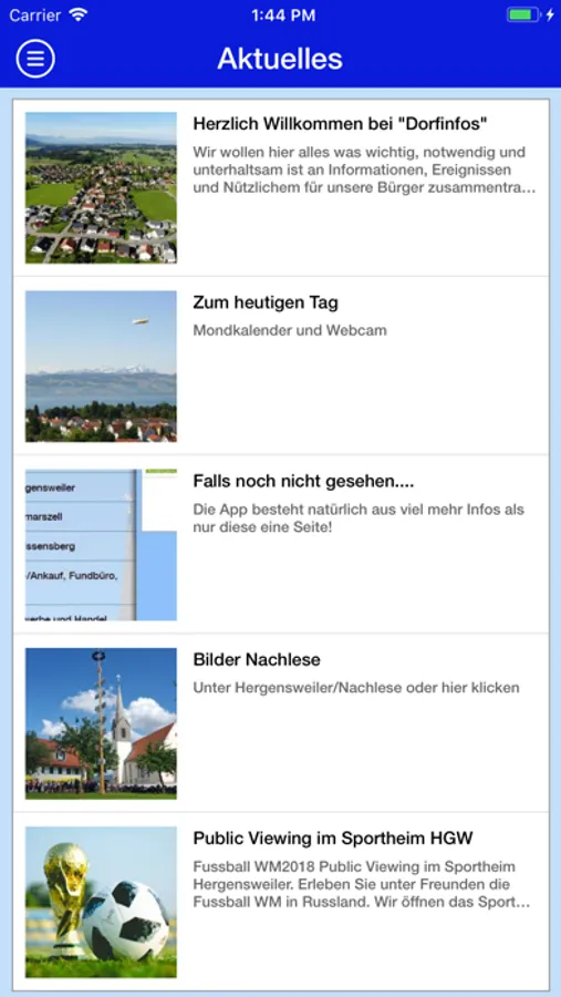 Jetzt gibt es "Dorfinfos" als informative App für euer Smartphone! Alle Neuigkeiten, Fotos, Veranstaltungen und Termine landen so direkt in der Hosentasche. Wann immer es etwas Wichtiges gibt, wird es aktuell auf dem Smartphone erscheinen. Und weil ein Smartphone eben auch ein Telefon ist, lässt sich per Knopfdruck gleich eine Verbindung zu den Kontakten herstellen. Die "Dorfinfos" App sorgt immer für den richtigen Durchblick!