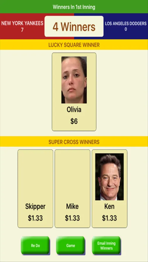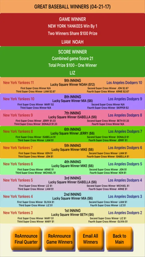 GamePool can voice announce the results after each inning and each game with individual presentation for each winner. It can provide you with a catchy short presentation after each inning or game on TV via Apple TV or another similar interface.