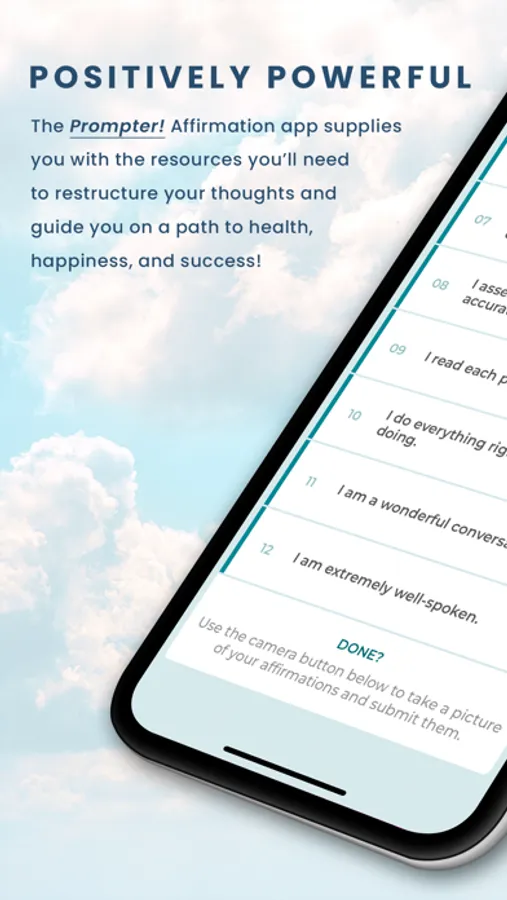 We often think that success creates a positive mindset, but that’s backwards: our thoughts dictate our actions. If you constantly think that, for example, you’re average, you are rehearsing a pattern of thought that will perpetuate in your behavior. We have the solution to this feedback loop: The Prompter affirmation platform. We supply the resources you need to restructure your thoughts and guide you on a path to health, happiness, and success. We provide you with a unique set of affirmations every 21-days that you are to write out by hand and submit daily through the app. When you affirm positive ideas in the present tense with deliberate intentions, you are building new mental habits.With enough rehearsal, these affirmations will become reflexes. Hereafter, you will have no doubt that you are organized because you’ll have rehearsed the idea that “I am very organized in everything I do.” That’s the power of affirmations.