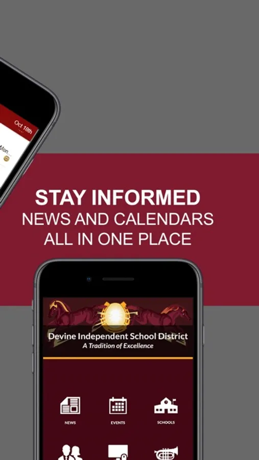 With the Devine Independent School District mobile app, your school district comes alive with the touch of a button. Easily navigate through current news and events or check out the latest updates with social media. Quickly retrieve contact information, sporting scores, lunch menus, and more! It’s your school district available at your fingertips.