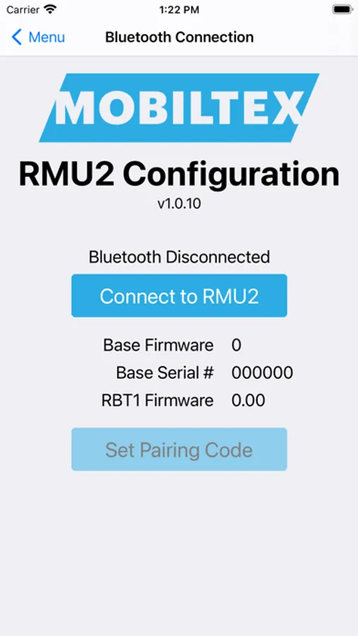 The RBT1 and RMU123PGM is always in a Bluetooth pairing mode and requires a pairing code entered on the app. The pairing code (default=123456) can be found and changed with the app. Once paired, the iOS device can reconnect without needing to re-enter the code. The RBT1 pairing code can be reset by tapping the RBT1 5 times in 10 seconds with a user-supplied magnet.