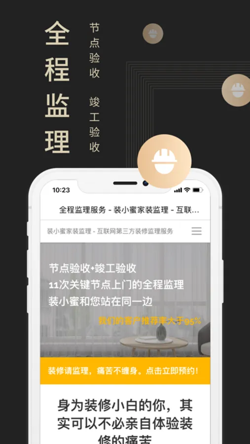“装小蜜”开创互联网家装监理服务理念,用专业角度帮助您处理装修中的相关事宜,对装修进行全方位的监理,通过装小蜜积累的项目管理经验和行业资源 ,让您省钱、省心,省力的实现高质量的装修。已开通北京、上海、杭州和武汉。