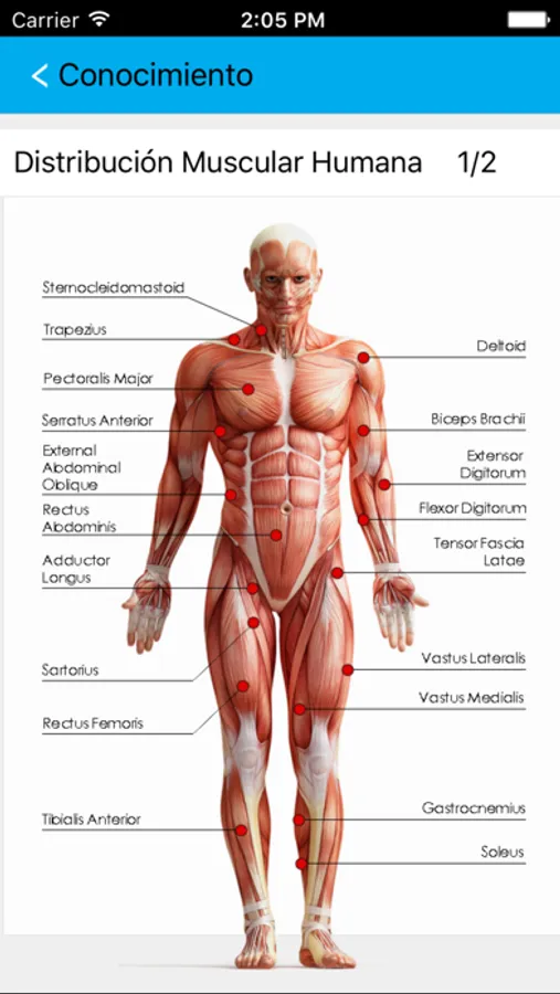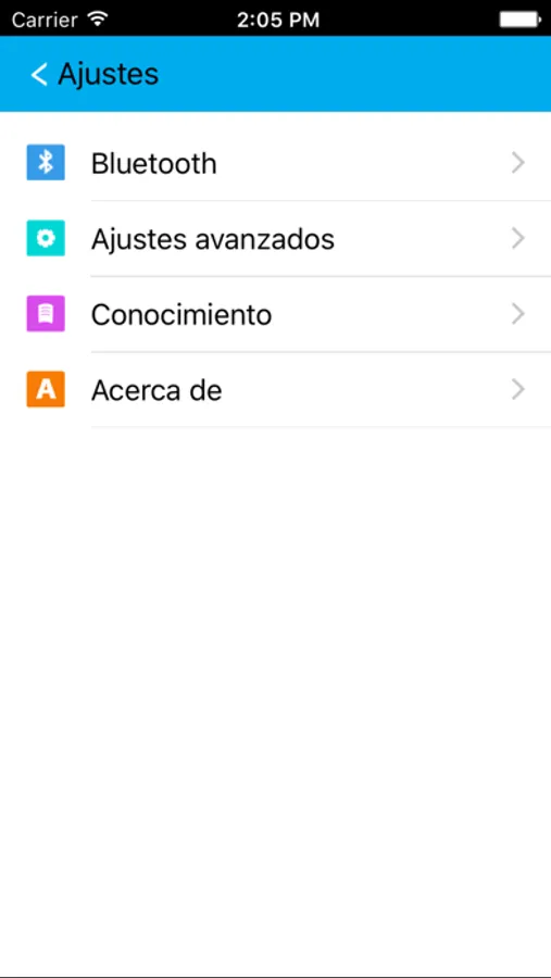 3. Configuración: Conexión Bluetooth, Distribución muscular, Acerca de la APLICACIÓN, Comentarios, etc.