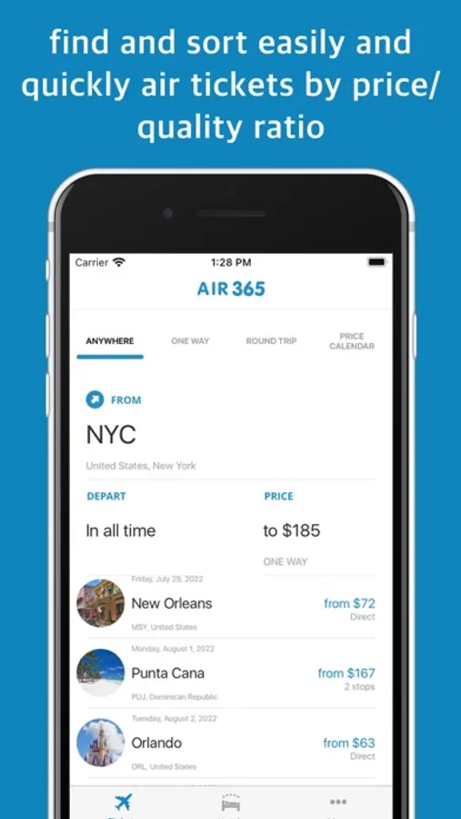 Air 365 can become your mobile airline ticket window, also select cheap flights offers from online agencies that often offer lower prices than airlines.