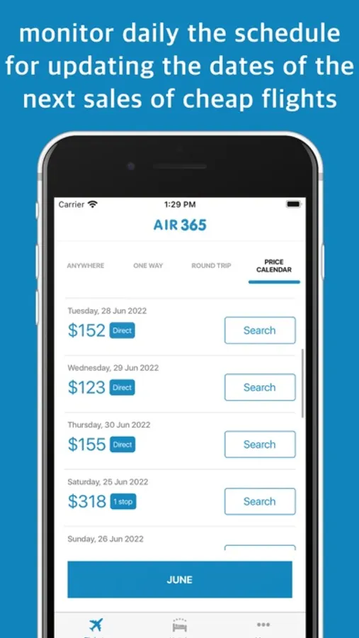 - monitor daily the schedule for updating the dates of the next sales of cheap flights;