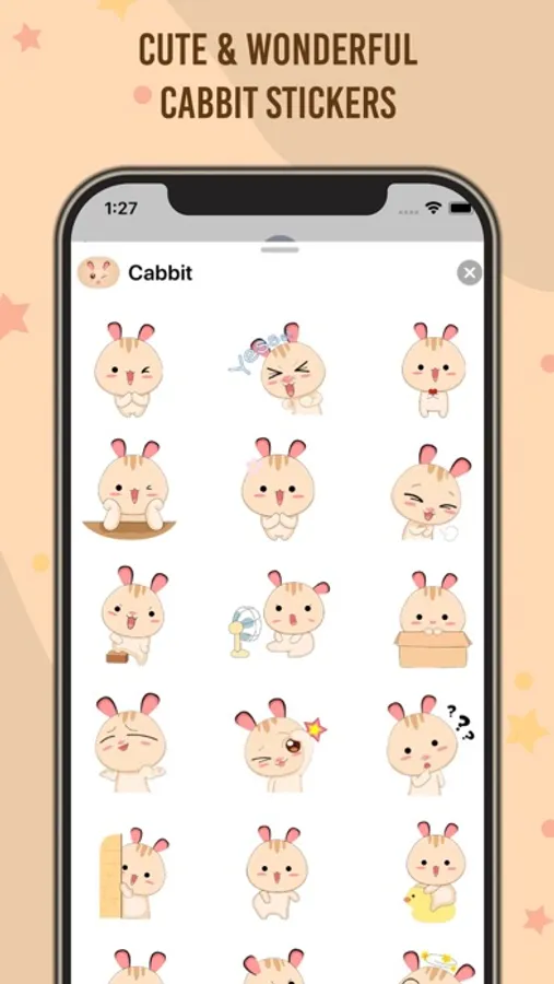 With over 100 stickers to choose from, you're sure to find the perfect one to express yourself, whether you're feeling happy, sad, angry, or anything in between. Cabbit Stickers also includes a variety of funny and adorable expressions, making it the perfect way to liven up your chats.