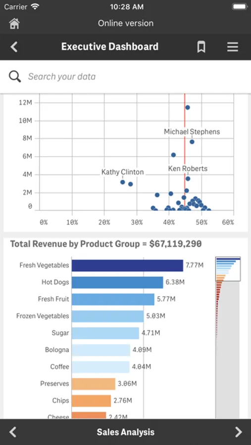 Qlik Sense Mobile delivers the all the power of Qlik Sense on iOS. It offers full access to Qlik Sense Enterprise environments, including exploration, creation, and collaboration, and the ability to download apps for offline use. With Qlik's Associative Engine running locally on the device, Qlik Sense Mobile provides unrestricted exploration and analysis when no connection is available.
