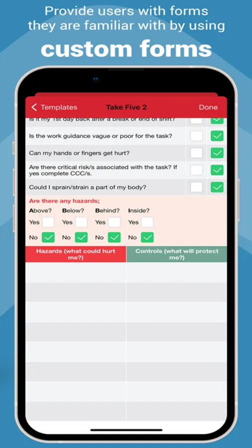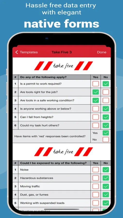 Seamless downloading/updating of new ‘take five’ forms published in the dashboard app.