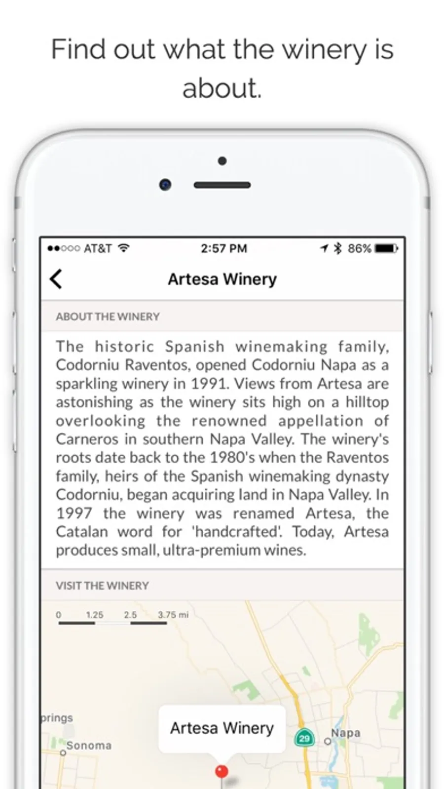 STUNNING DESIGN & PHOTOS: Discover wines, wineries and restaurants in Napa Valley with this beautiful app. Winery Guide shows you nearest wineries, wine tasting menues, restaurants, local food joints, restrooms and more…. instantly.
