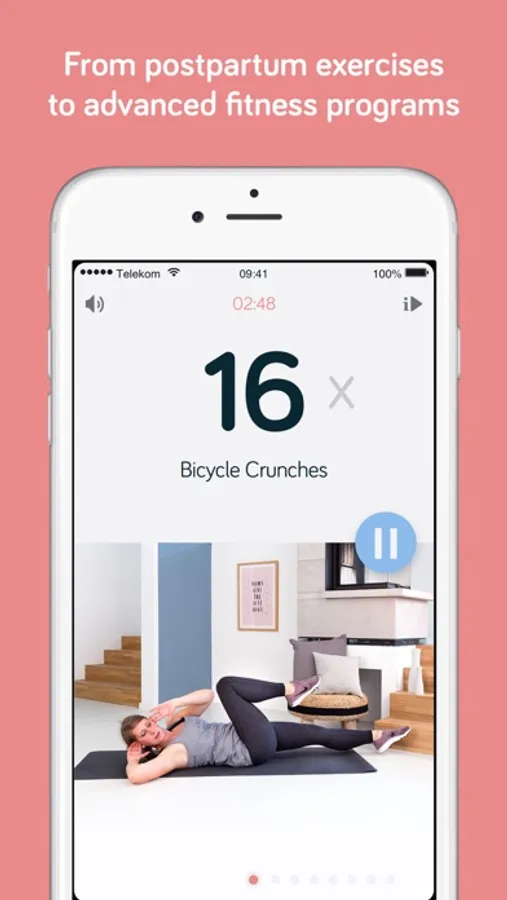 Pause workouts and resume them when your sweetheart is calm. For most exercises, there are also easier alternatives available. An animated preview during the workout shows the correct exercise execution. Audio cues encourage you and help you avoid common mistakes. As you progress, more and more exercises will become available to you.