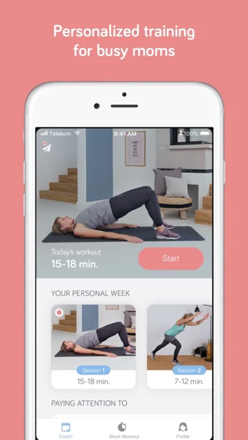You can try out Mommymove for free after registration and get your personalized training plan. Up to two fully personlized workouts are freely available every month. For everyone who wants to be active more regularly an affordable PRO account is required.