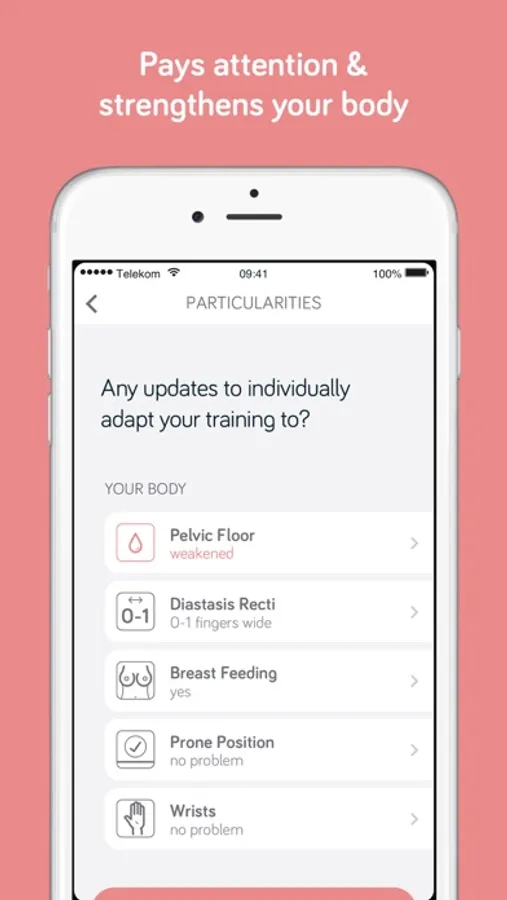 Increased intensity and additional exercises after your first part of postpartum recovery. Your coach will constantly adapt your training with attention to your physical characteristics (such as a weakened pelvic floor) and gently rebuild your fitness.