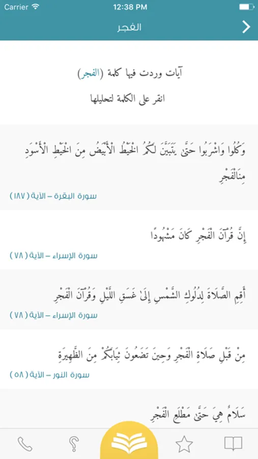 • اختر إحدى هذه الكلمات وستظهر الآيات التي تحتوي على هذه الكلمة او ما يشابهها ممن تحمل نفس الجذر