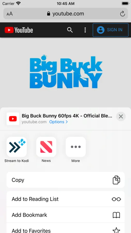 With the App extension, just tap the share button from Safari or a compatible App and choose "Stream to Kodi", select your receiver, sit and enjoy.