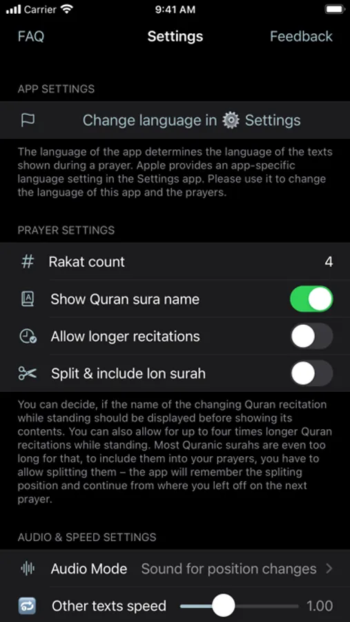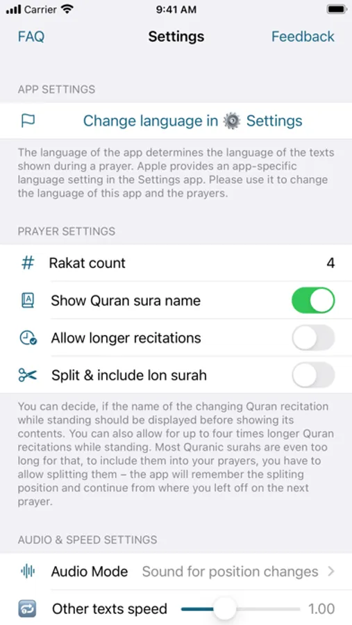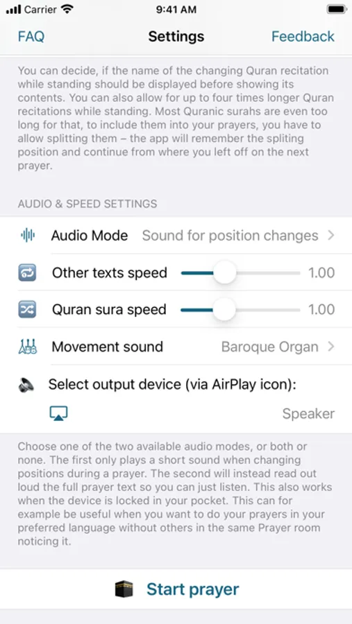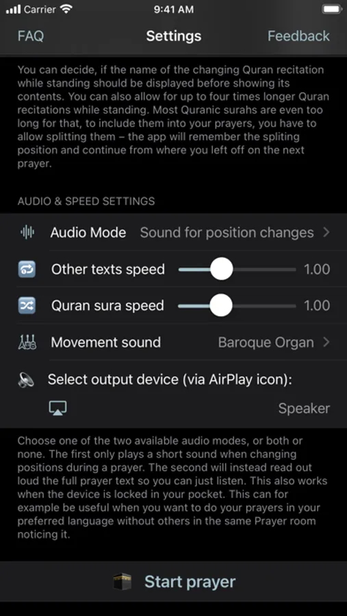 This app will help you make your prayers in English (or German or Turkish) to make them more meaningful to you. To do this, leave your device lying in front of you during the prayer and simply read the text from there. Or alternatively, configure the computer voice audio mode and listen to the text with your headphones during the prayer, while keeping your phone in your pocket. The app is purposely kept simple and reduced to the basic functions so that it does not contain distracting elements such as animations or advertising. Advertising is not an issue anyway, since the whole code is published with an open source license on GitHub (at https://github.com/Flinesoft/Prayer).
