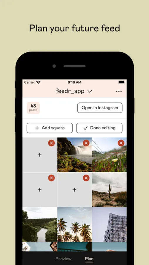 Feedr is the easiest way to see how your images would fit in your Instagram feed.