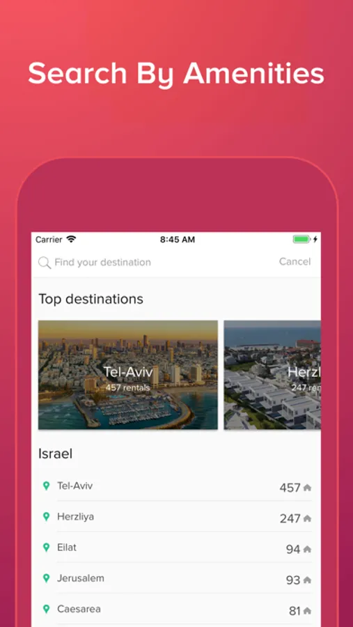 Book luxury vacation homes in Israel with the Holidator app. Save your favourite villas and apartments, message your host, book directly from the app without booking fees, find the best prices on flights and great deals on your rental car or arrange your ride from the airport to your destination. Your dream getaway is just a few taps away!