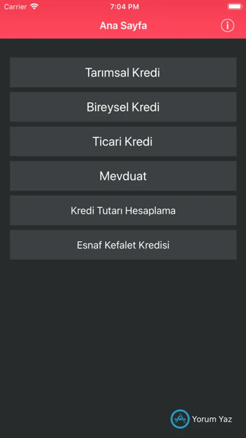 Bazı kredi türleri için taksit tutarından kredi anapara tutarına ulaşmak için, "Kredi Taksit Tutarı" menüsunu kullanabilirsiniz.