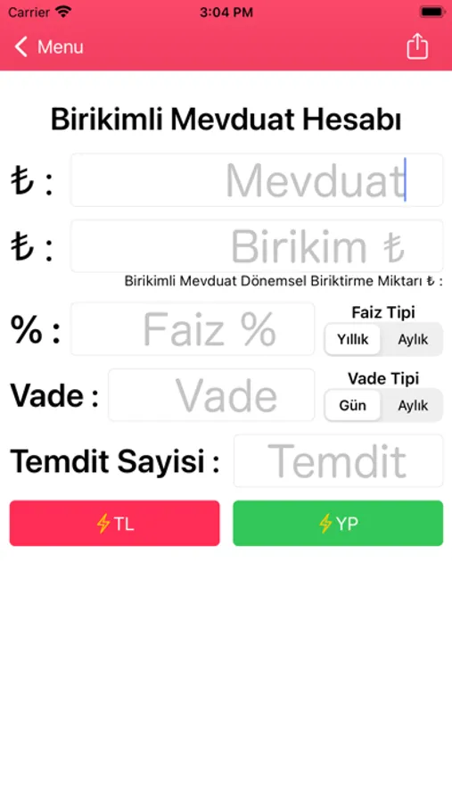 Vadeli Mevduat TL ve YP ayrımı yapılmıştır.