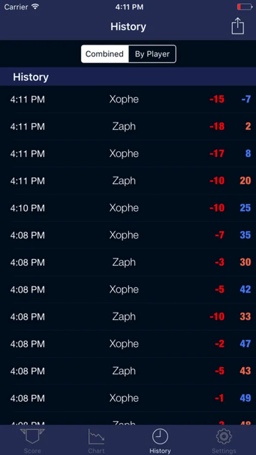 • Two ways of entering scores : button or swiping