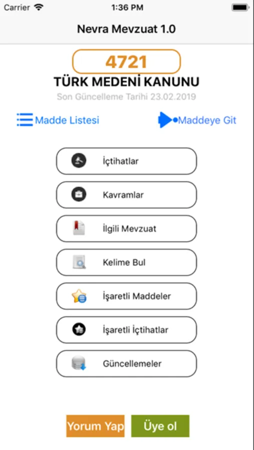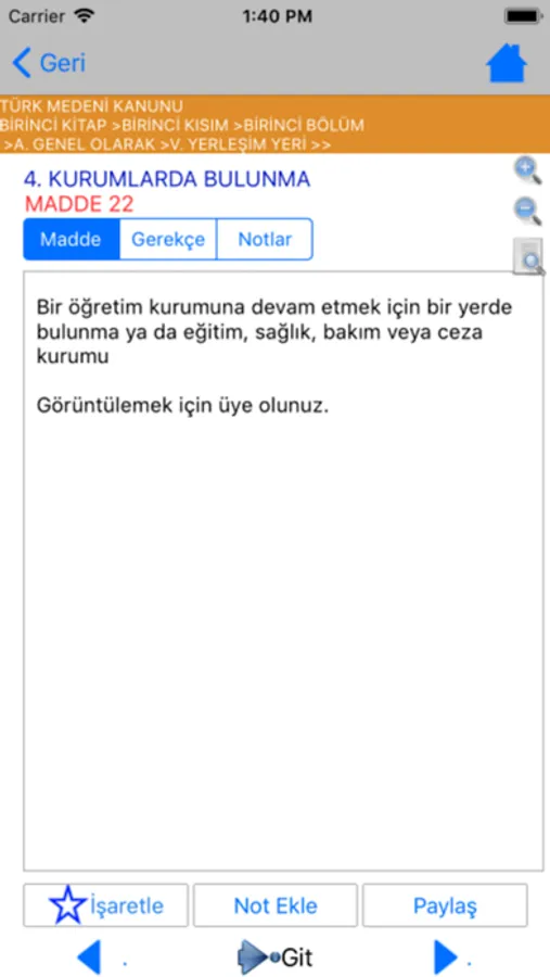 1-Yıldız işaretine basarak Kanun maddesini işaretleyip İşaretlediklerim menüsünden hızlıca ulaşabilirsiniz.