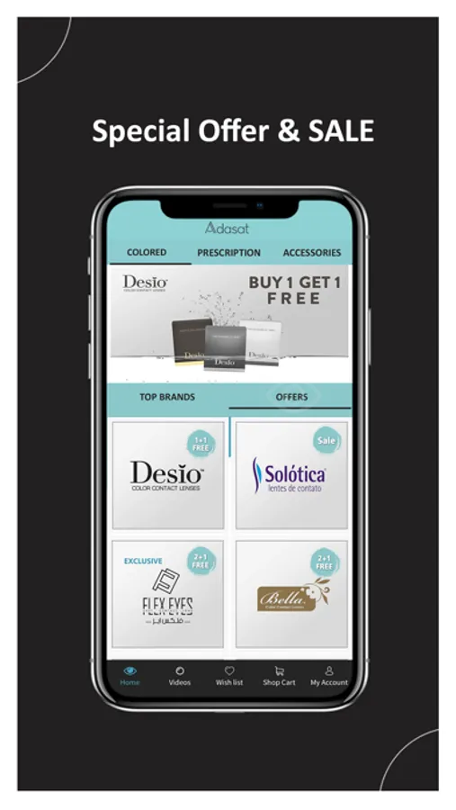 Adasat application offers the largest selection of colored contact lenses and prescription transparent contact lenses from well-known brands to become a pioneer in the contact lenses’ field and the first in the Middle East.