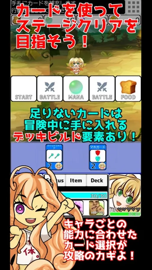 ゲーム中はキャラごとに設定されたカードで冒険をします。