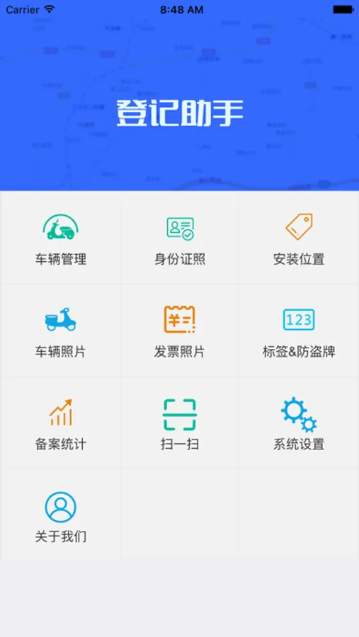 《登记助手》是一款为电动车平台补充照片等信息的移动工具,上传车辆用户的身份证照、防盗芯片安装位置、车辆照片等,完善防盗信息。