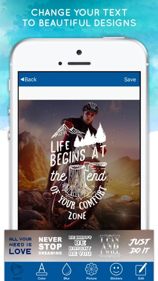 • Make your own quotes, preset templates and 10000+ different styles of EACH template.