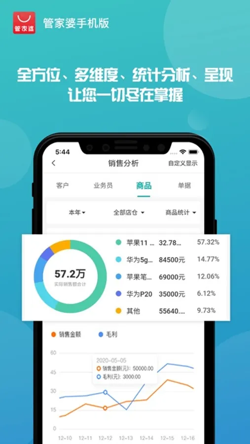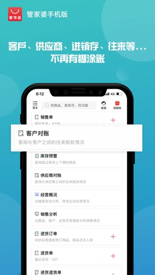 管家婆手机版手机端:旅行、出差、外勤办公,登录管家婆手机版手机端,随时查数据、查库存,掌握经营状况;
