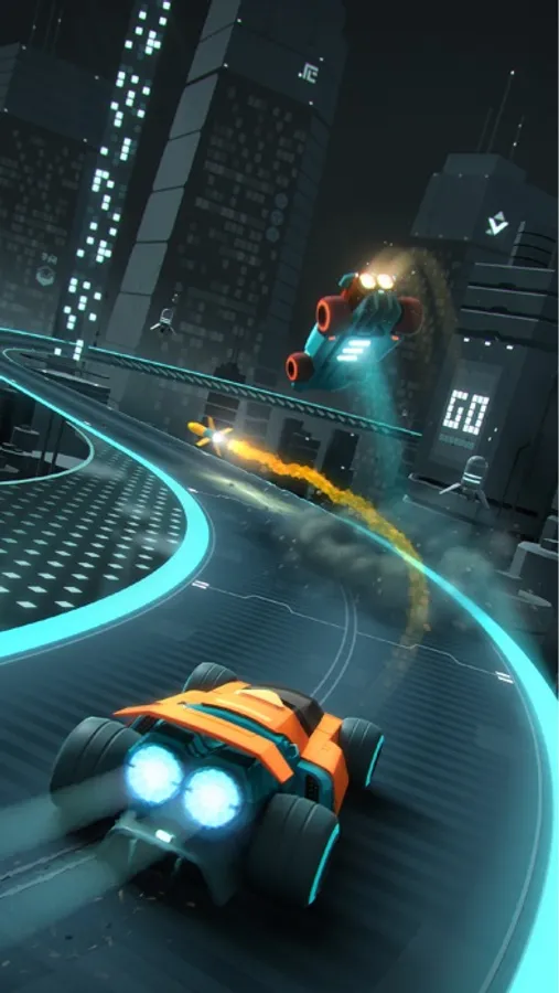 Two cars. One race track. And a whole arsenal of power-ups. Welcome to the dynamic racing world of the future.