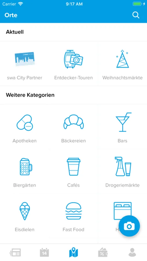 - Locations: aktuell 21 Kategorien. Von Apotheken über Bars, Museen bis hin zum Zoo.