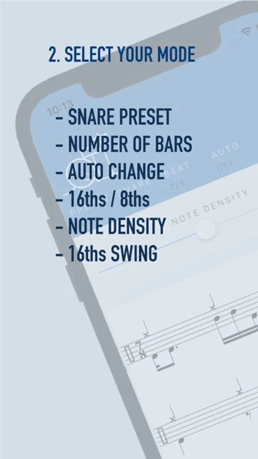 - You can add a snare drum on 2 and 4, or 3. In « FREE » mode, the snare placement is random.