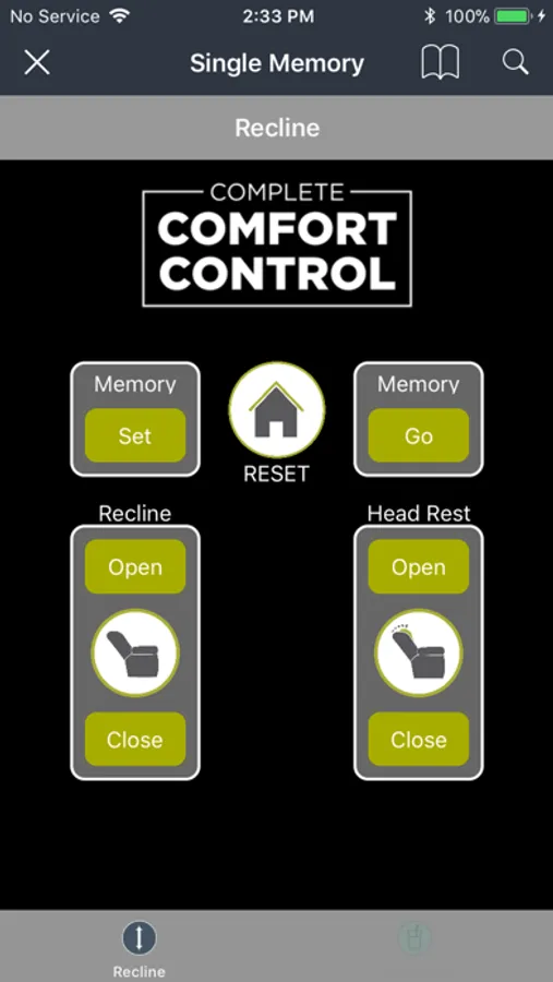The app allows you to connect to your enabled furniture via Bluetooth from your iPhone or iPad. Depending on the options, you can control the electric motors that move your chair or sofa and may include power recline, power headrest, power lumbar support, memory functions, home function, light, cooling cup, heat, and massage.